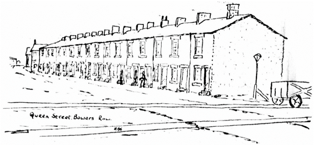 It is the mines owned by Joshua Bower that concern us most at the moment in the 1860s (I think), that company sank its shafts. The family, firm of Bower had started as a glass-making concern earlier in the century, then expanded nationwide into roadmaking, then into coalmining. Like the other coalowners, they also farmed the land under which their coal lay, to avoid being accused of damaging other people’s property by the consequent subsidence. Again like the other coalowners, they advertised far and wide for workers to come and live in the houses which they were building beside the new mines. This was part of a pattern in the Leeds area the population had more than trebled in the first half of the 19th century, and that rapid increase was still continuing. 3. But Bowers Row was not an expansion of an already existing village it was simply created out of farmland and scrub. Before the Rows were built, there had been a few cottages scattered among the fields that used to lie between Astley Lane and the River Aire, but in those days the population consisted mostly of rabbits, foxes, and skylarks. People were an innovation, and just about every human being was very much a newcomer.