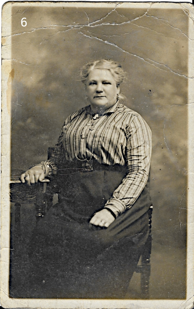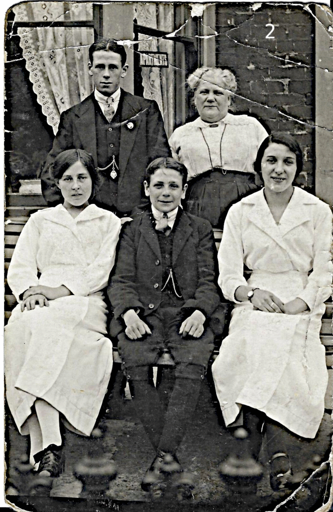 2 – Back row, Edward and his Mother Sarah Ann Smith nee Cockerham. Unknown, Albert Smith, Jessie Simpson.