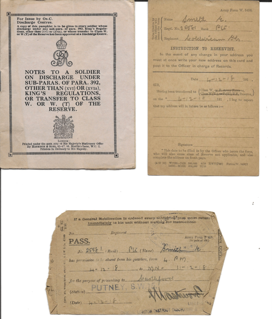 Discharged and transferred to Army Reserves on the 11th December 1918.