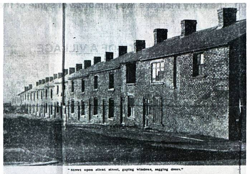 The shudder sent me seeking more knowledge of Bowers Row. What did this dim phantom know which set disturbing visions swirling amongst the debris? A demolition order for more than 130 houses surely calls for no psychic melodramas these days. Slum clearance is going ahead everywhere. Surely, we are not to be haunted because we have provided better houses for several hundred people? But still the ghostly question marks turned and twisted amongst the weed-grown garden patches.