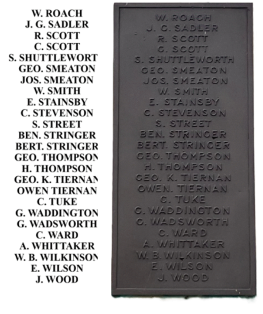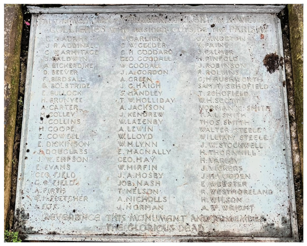 ALSO IN MEMORY OF WORKINGMEN AT ALLERTON BYWATERCOLLIERIES WHO WERE RESIDING OUTSIDE THE PARISH
